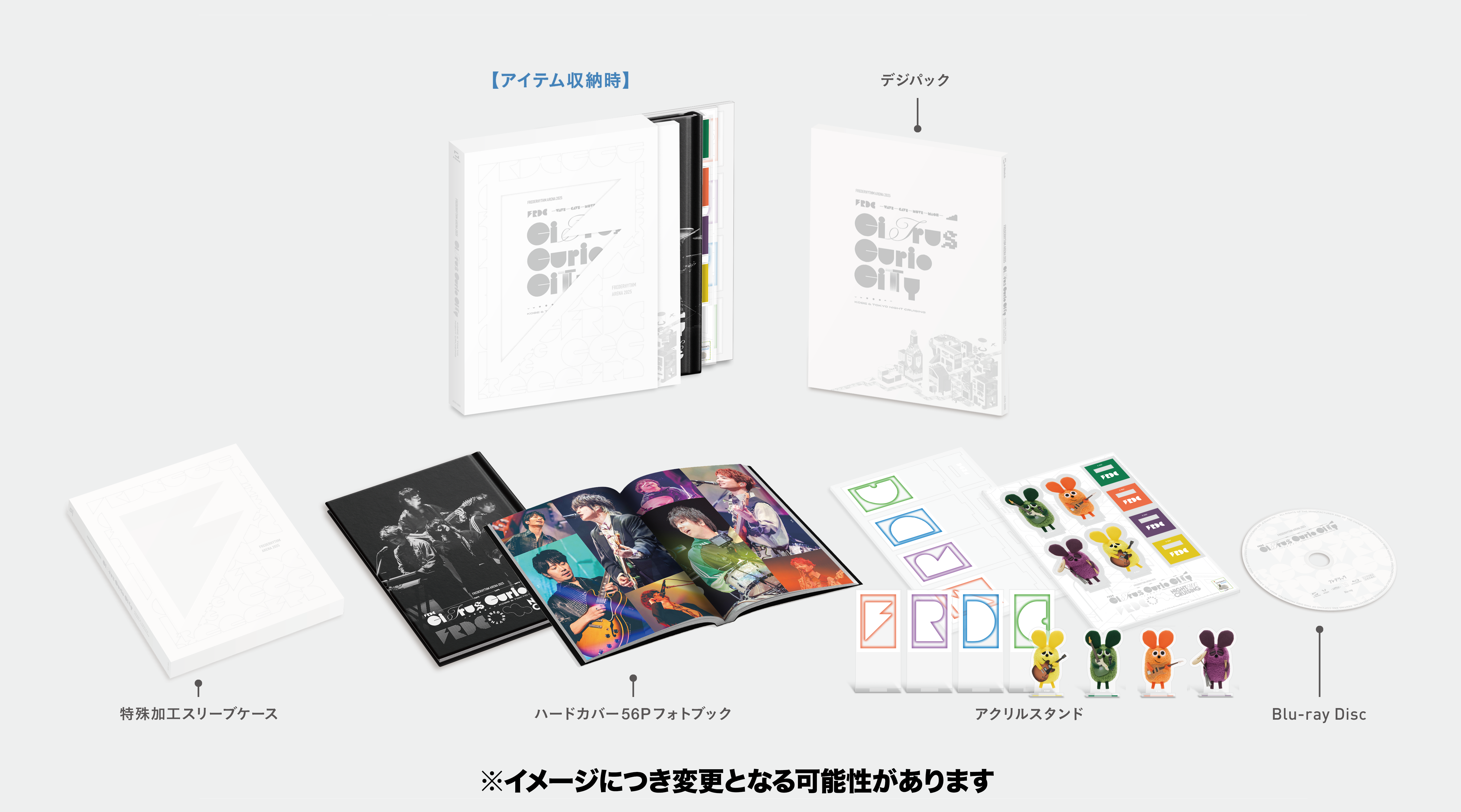 また、豪華限定盤には、アリーナ公演時に限定で販売されたレオ・レオニとのコラボぬいぐるみのアクリルスタンドと、さらには舞台照明にもなっている「FRDC」型のアクリルスタンドや、ハードカバーの56Pフォトブック、そして盤面デジパックの4点を、型押しされた特殊加工スリーブケースに収めるプレミアアイテムとなっている。※豪華限定盤はオフィシャルショップ&UNIVERSAL MUSIC STOREの期間受注限定商品です。