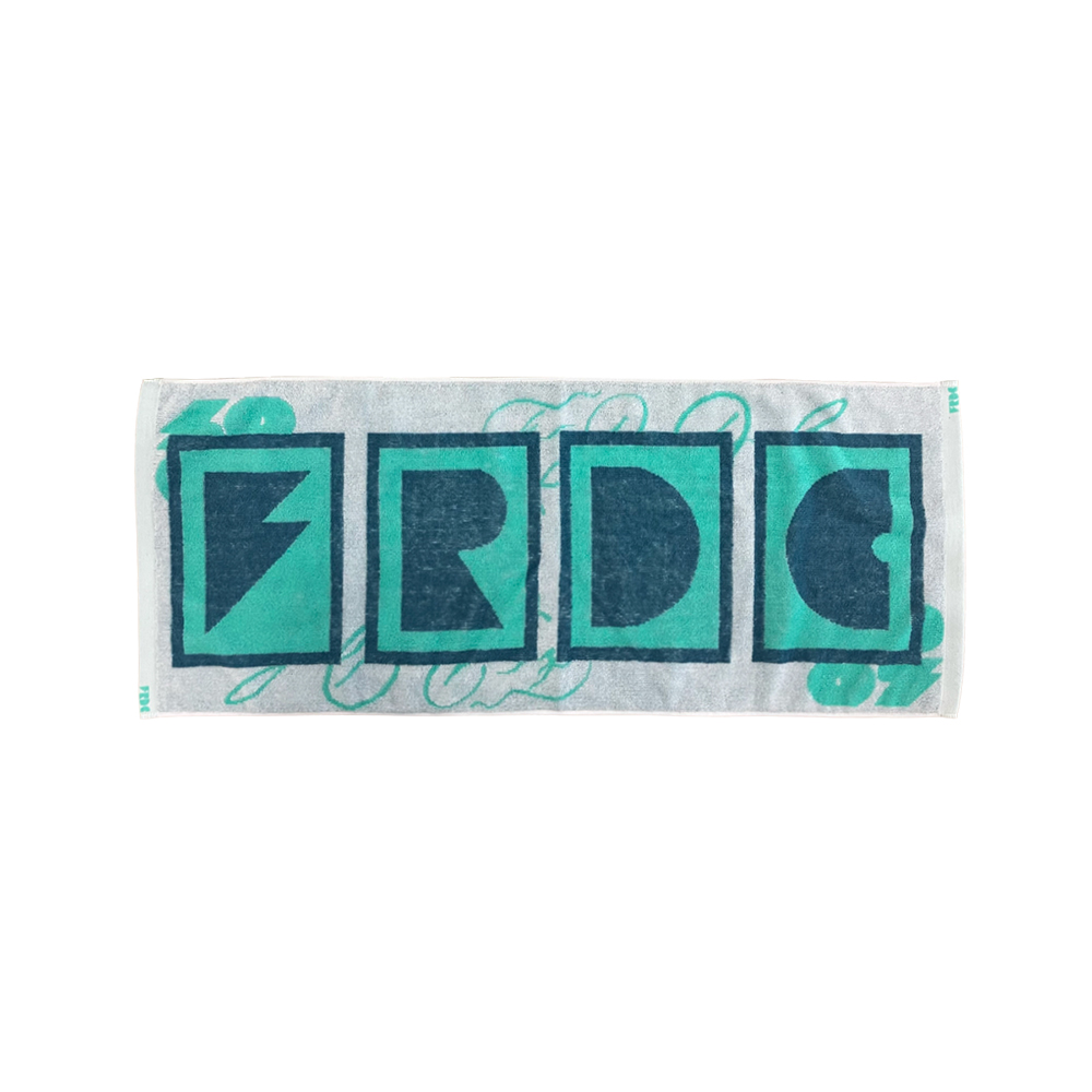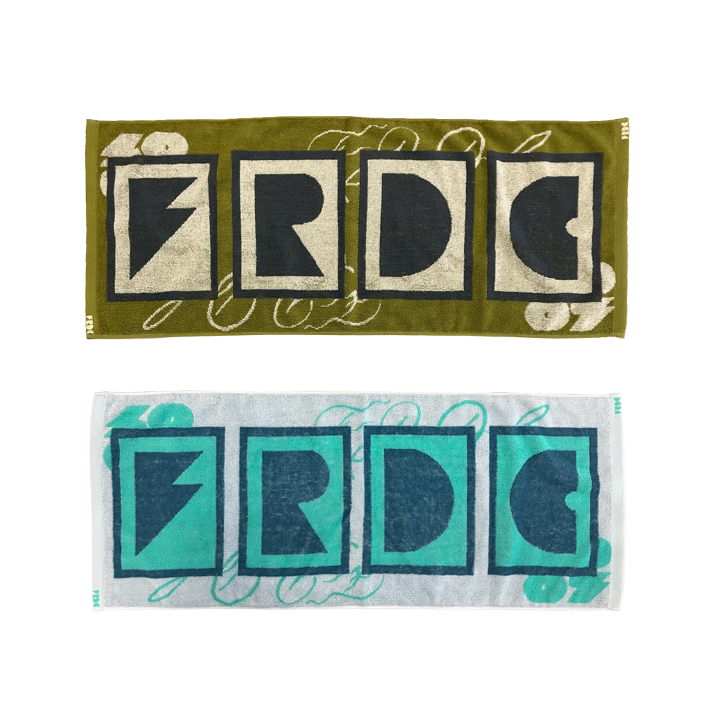 重なったFRDCのロゴが特徴のタオル